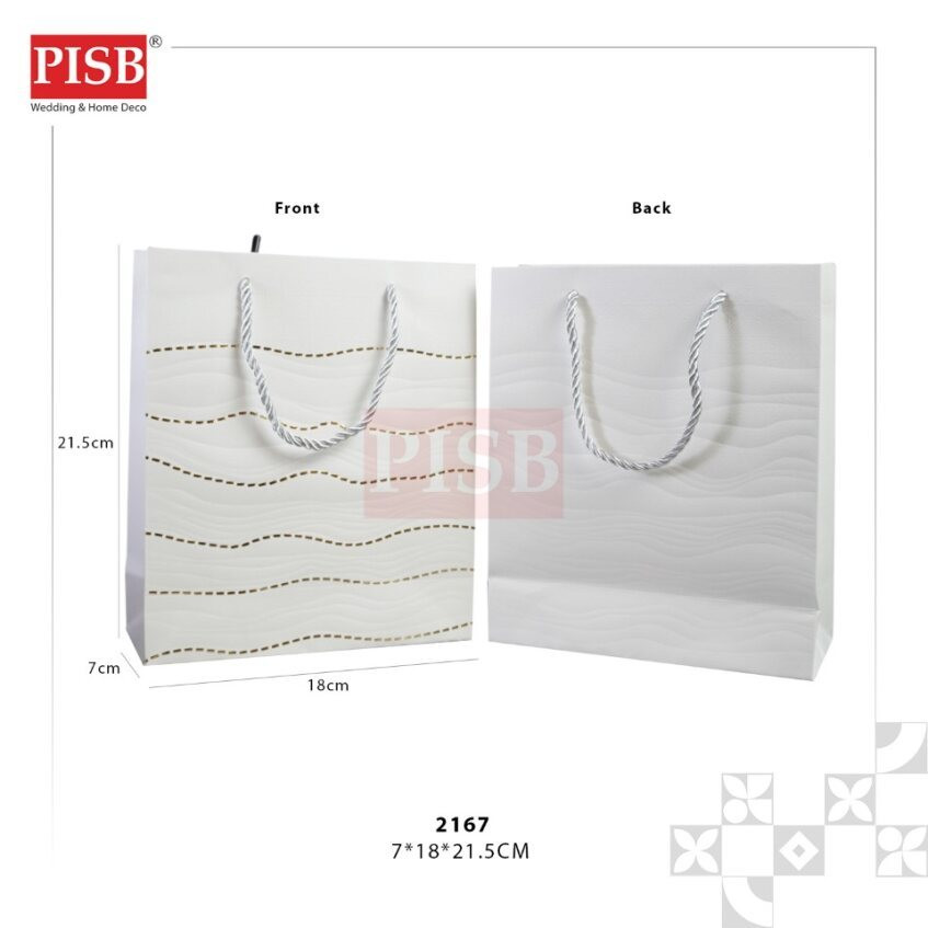 Beg kertas berkualiti dan berwarna menarik, sesuai digunakan untuk pelbagai majlis istimewa seperti majlis hari jadi, sambutan ulang tahun, majlis perayaan, majlis graduasi, majlis kenaikan pangkat, majlis pertunangan, majlis doa selamat, dan sebagainya.