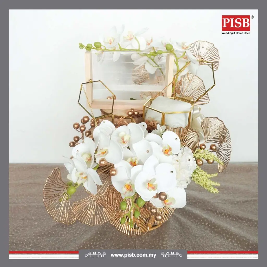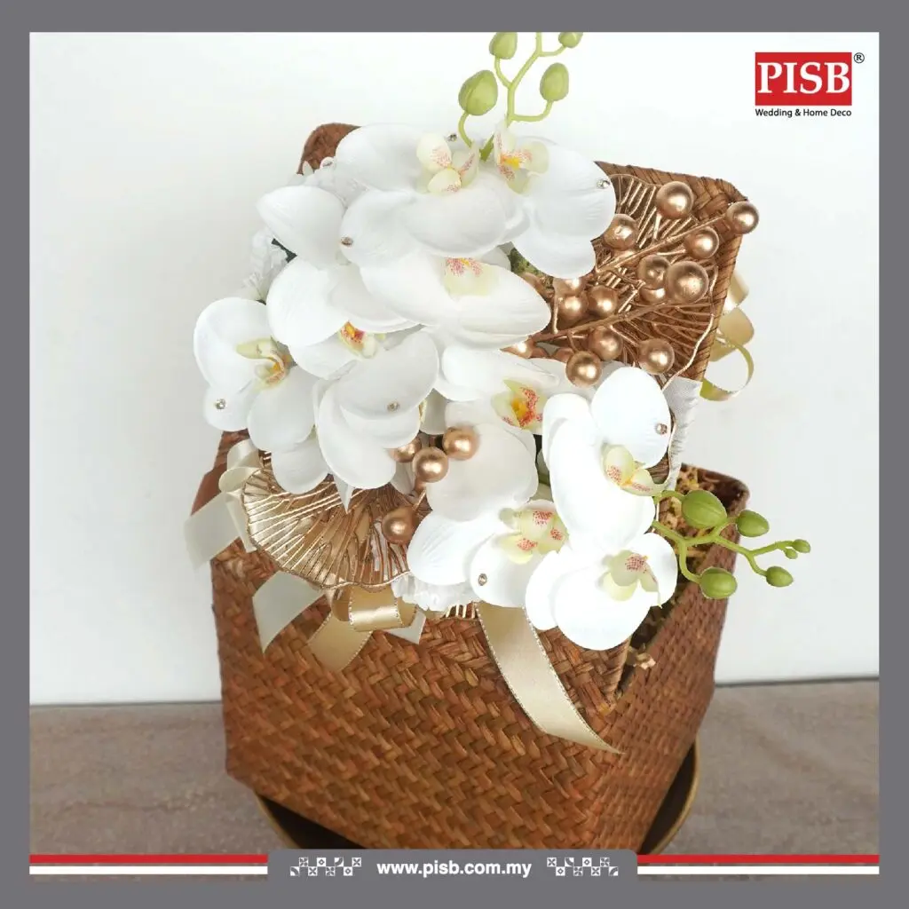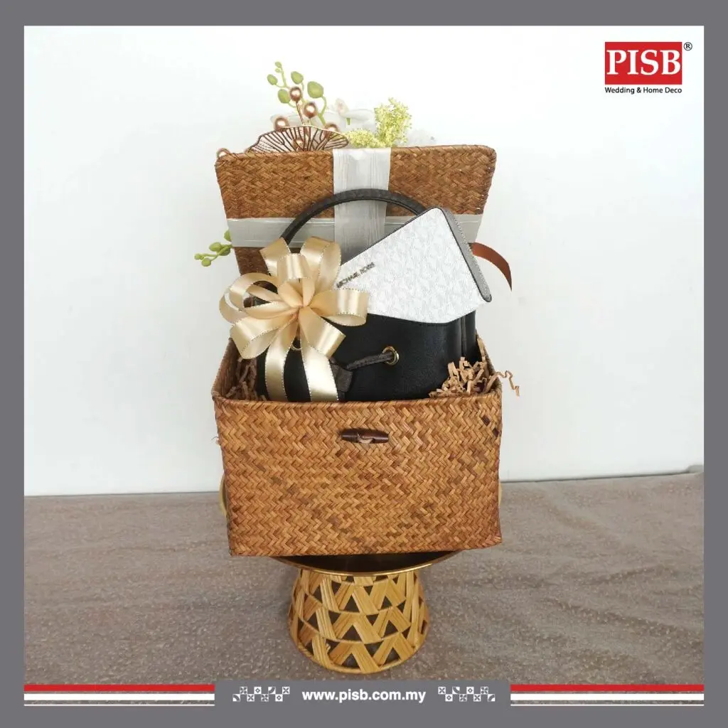 A refined fusion of natural charm and modern luxury, this exclusive PISB hantaran collection features elegant rattan textures enhanced with gold details — bringing warmth, sophistication, and timeless beauty to your wedding or engagement ceremony.